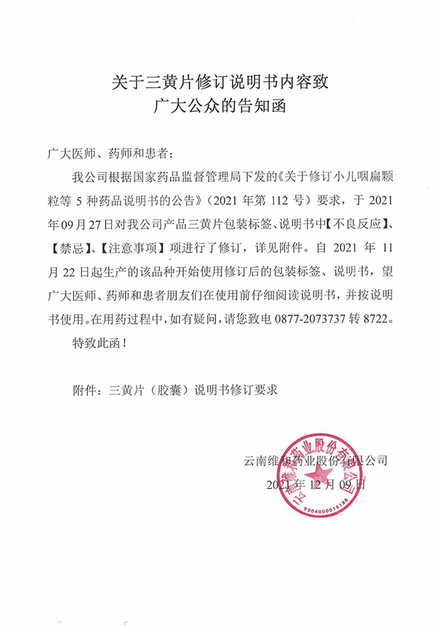 關(guān)于三黃片修訂說明書內(nèi)容致廣大公眾的告知函