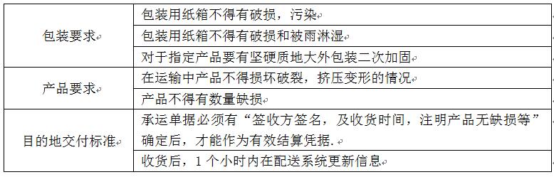 c)承運產(chǎn)品完好送達(dá)標(biāo)準(zhǔn):